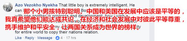 关注中美关系的不仅仅是中美两国人民,来自其他国家的网友也借机“示爱”并对中美关系的未来表达祝愿: