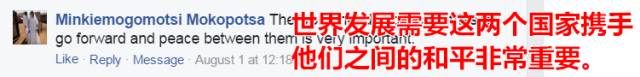 博茨瓦纳网友:世界发展需要这两个国家携手,他们之间的和平非常重要。