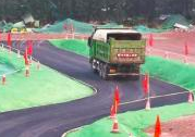 一辆运输车行驶在建筑垃圾资源化处置项目内的“环保路”上。这条“环保路”由棚改建筑垃圾生产的材料铺筑而成。 新华社记者 罗晓光摄