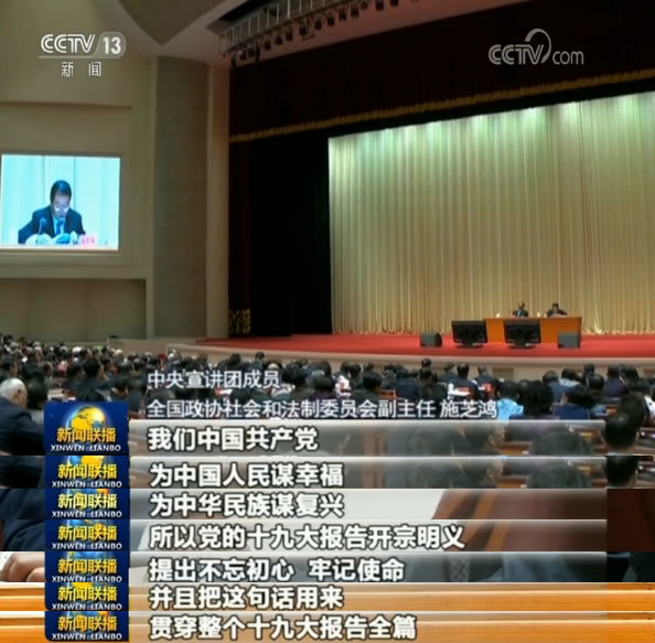 在山东,中央宣讲团成员、中央政法委秘书长汪永清,今天向当地干部群众作了十九大精神宣讲。