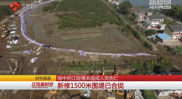 险情发生后,扬中市立即启动二级应急响应预案。组织人员对险情发生地附近村民进行紧急疏散,现场调集20余台挖土机械分组分作业段进行施工,并组织公安、武警、民兵等多方力量开展抢险、筑堤工作。经过4小时的奋战,新修筑的约1500米围堤已抢在晚潮涨潮前实现合拢。坍塌并未造成人员伤亡,抢险工作仍在紧张进行中。