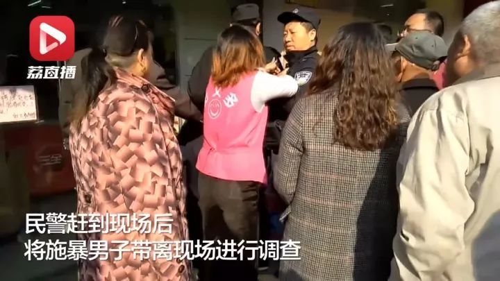之后,几名老人将被打超市女工扶起,并拨打110报警。接警后,110民警赶到现场将施暴男子带离现场进行调查。