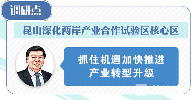 在昆山深化两岸产业合作试验区核心区,娄勤俭来到彰化银行昆山分行和研华科技,了解大陆第一家台资银行发展和台商企业转型升级情况,希望台商企业抓住时代性需求变化带来的机遇,加快推进产业转型升级。