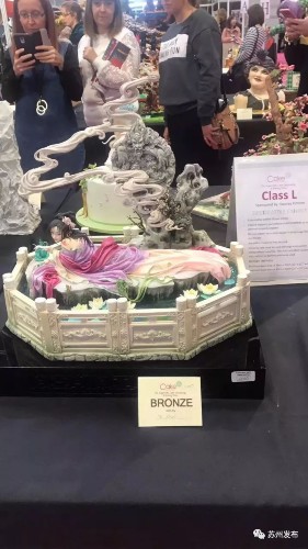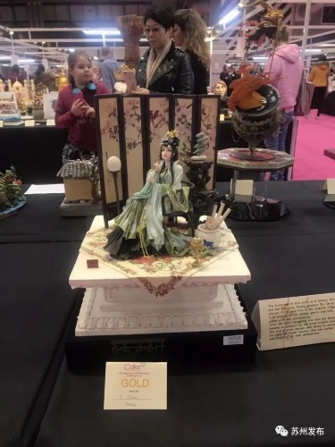 金丝头饰,水袖重叠,美目盼兮,小宫灯明亮,屏风的花鸟图呼之欲出,这可不是面人或泥塑,而是可以吃的翻糖蛋糕啊!就是这款蛋糕,近日在伦敦举行的世界最大的蛋糕比赛——英国国际蛋糕比赛上,征服了所有评委,一举拿下金奖!而蛋糕的作者就是来自苏州的周毅。