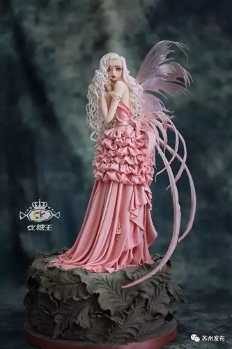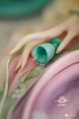 俯卧的美女头发上有一束鲜花,由数十只小花组成。细节图片显示,鲜花上还可以看出细微的纹路。