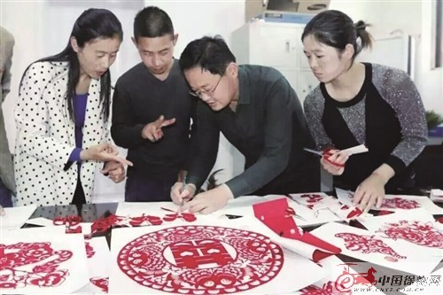 如何与聋人交流是个难题,张智特地请来特教中心的手语老师做翻译,同时也教特教中心的孩子们学习剪纸。