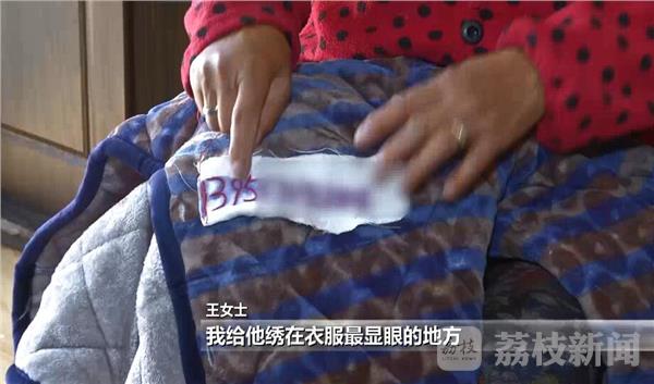 王女士:“他经常(走)丢失 没有办法了。闺女她说,妈,把我的号码写在白布上,你给他绣,绣好你一件衣服一件衣服都给他缝上去。她说南京人特别好,人家都有手机,她说随时都能给咱打电话,咱就好找了。”