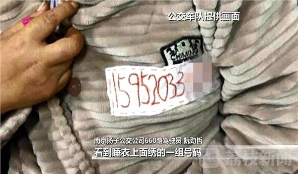 南京扬子公交公司660路驾驶员 阮劲哲:“站在站台边上,又想上车又不想上车,神情比较恍惚。而且穿的又是睡衣,看到睡衣上面绣的一组号码,我还以为是医院的住院号码,后来再一看估计是手机号码,就拨了一下。”