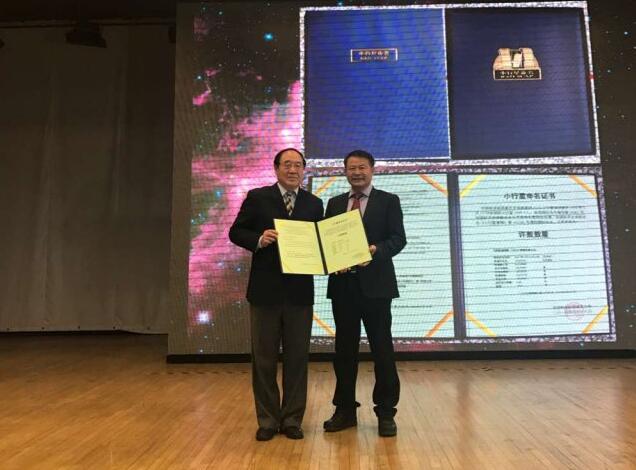 中国科学院国家天文台台长严俊宣读了 “许敖敖星” 国际命名公报、命名证书,并向许敖敖颁授“许敖敖星” 国际命名公报、命名证书和轨道运行图。