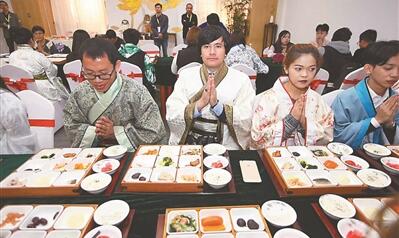 这批留学生来自南京大学、东南大学、江苏大学等11所江苏高校。开幕式上,60名留学生身着汉服,端坐在大报恩寺塔前广场的国学桌前认真聆听,并亲身体验了大报恩寺感恩餐、感恩礼等活动,感受中华传统文化魅力。