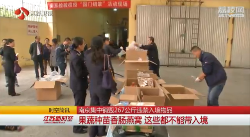 今天,江苏南京检验检疫局在南京集中销毁了267公斤禁止进境物,主要从入境旅客携带物品,邮寄物品和行李中截获,包括燕窝,花胶等高档名贵物品。据检验检疫部门统计,在所有被截获的禁止进境物中,各国水果蔬菜,种子苗木占到九成,香肠,燕窝等动物产品占到一成。