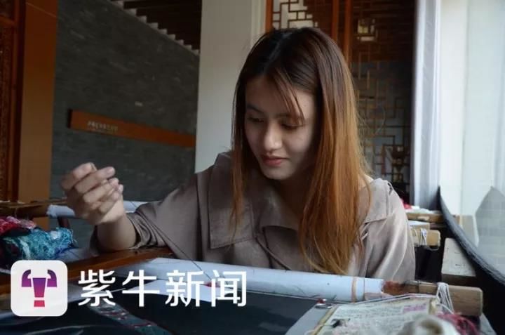 今年25岁的郁竹君,则是“苏绣世家”的第三代,她从小对刺绣耳濡目染,后来跟着母亲卢梅红学习刺绣。郁竹君在母亲的言传身教下,继承了苏绣技艺精髓,她从苏州大学文正学院国际贸易专业毕业后,在外企从事互联网平台推广工作,工作了一年多的时间,她觉得外企的工作压力比较大,快节奏的生活方式会让年轻人变得有些麻木,这让她有所触动,后来索性辞去了外企工作。