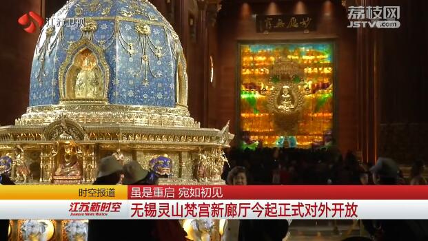 一年前,江苏无锡灵山梵宫廊厅内部分文化艺术精品过火受损,经过2000多名的能工巧匠一年来的精心修缮,今天,梵宫新廊厅正式对外开放。