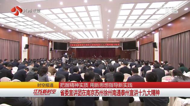 今天,学习贯彻党的十九大精神省委宣讲团走进南京、苏州、徐州、南通、泰州等地,宣讲十九大精神。