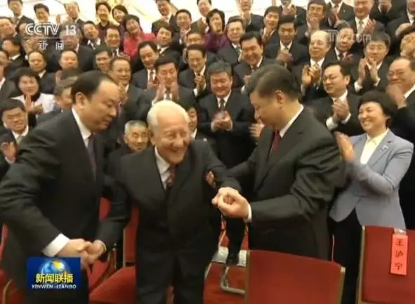 习总书记一把拉开前排凳子,请后面站着的两位老人坐在自己身旁,这一举动让网友直呼:动作太帅!