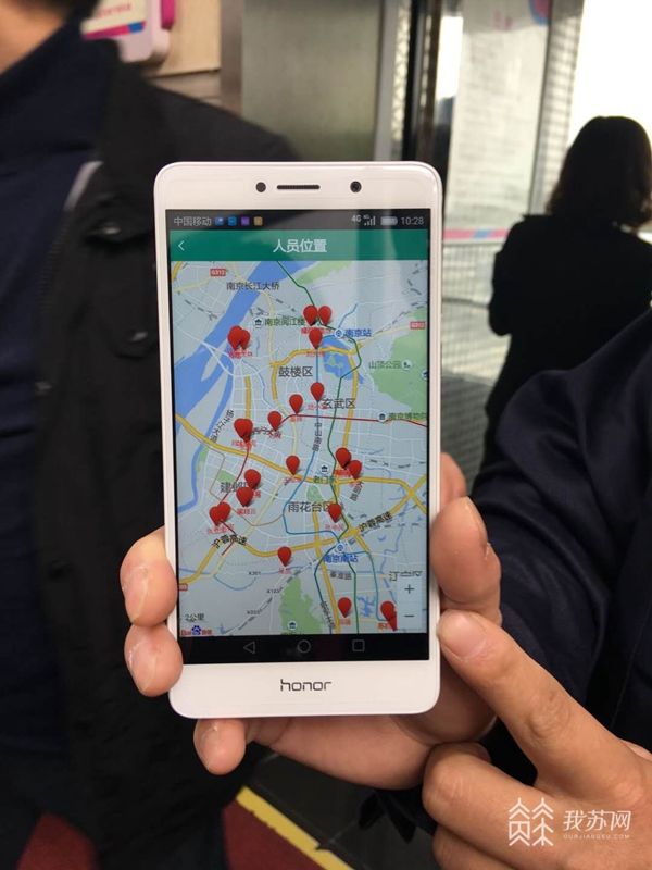 日立电梯江苏分公司维保管理人员吕戡向记者展示,打开“南京电梯”APP,页面上显示出了很多小红点,每个小红点就对应着一个维修员的实时位置。