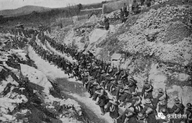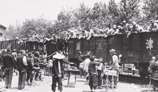 台儿庄战役胜利后,中国援军乘火车前往徐州一带。