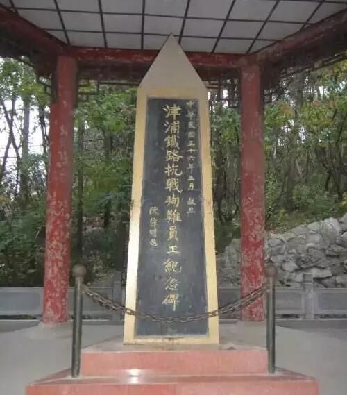 云龙山第一节山北坡,有一座肃穆的六角亭,亭内竖有一碑,该碑采用三角形锥体,碑身上刻:津浦铁路殉难员工纪念碑。正面偏南一侧刻有沈文泗所撰碑文,记载事件的经历及立碑的意义,另一侧则刻殉难员工的姓名和职务。