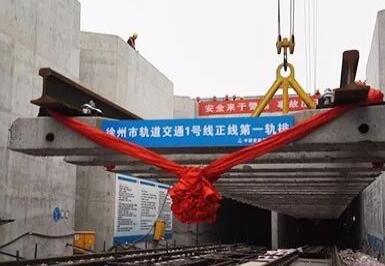 施工人员介绍,今天吊装铺设的是徐州地铁1号线正线部分的第一组轨排。这也可以说是徐州在建的3条地铁中,正线部分的第一根轨道。