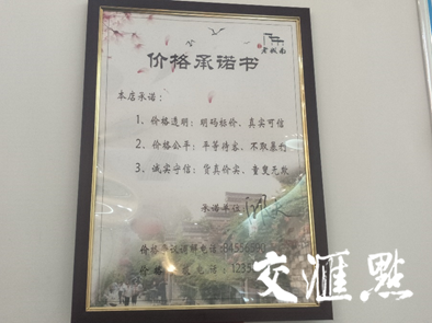 价格诚信犹如城市的一张名片,南来北往的人对城市的印象分就打在价格诚信上。交汇点记者进行实地探访发现,刚走进老门东景区,就看到牌坊树立价格诚信创建区公告牌,游客中心电子显示屏滚动播放价格诚信宣传画面。记者来到一家名为“浮遇纪”甜品店注意到,店内醒目位置上公示着价格承诺书并公布了价格争议调解电话以及价格举报电话。
