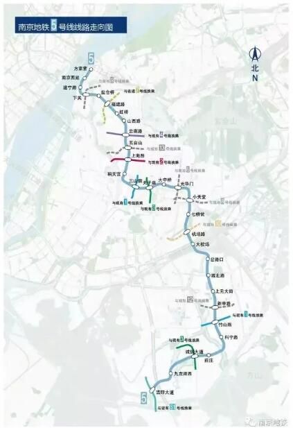 5号线是南京地铁"十三五"建设规划中的第一条开工建设线路。线路北起下关方家营站,南至江宁吉印大道站,全长37.4km,全部为地下线,共设地下车站30座,其中换乘站14座。