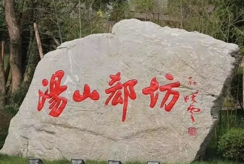 位于汤山,因为郄氏定居得名。郄姓同样少见,读音为“qiè”(切)。