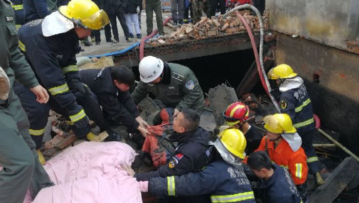 经消防人员现场勘察,坍塌建筑物为村后小沟上正在搭建的房屋,早上8点10分左右发生倒塌后,村民全力救援,从废墟中拉出一人,报警人称尚有人被埋在废墟中。