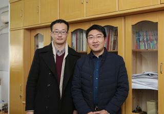 刘战(左)和朱征副校长合影。