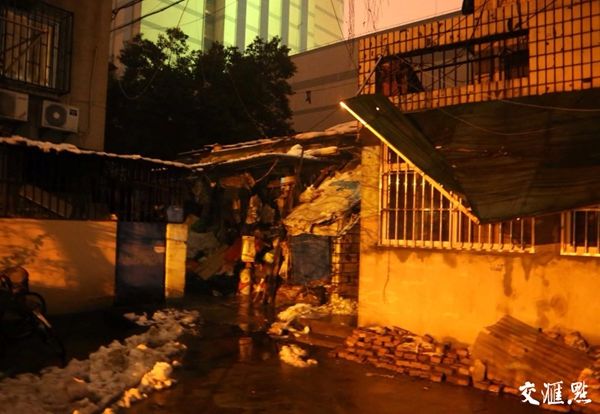 四维新村5号-1,准确说是紧挨老居民小区一座公厕旁的老旧环卫工工作棚,一间十平米出头的平房。即便周围老旧的居民楼,放在这间孤零零的小屋面前,都显得威严大气。采访当晚,5号-1旁的公厕正被围起来改造。据王亦桓介绍,她家里的十几平方米又被隔成了几小间,做饭的灶台搭在隔壁厕所的化粪池上,“日子就是这样一天天过起来的。”