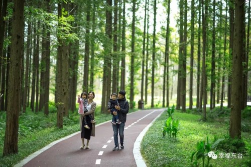 黄海森林公园空气清新,鸟啼婉转,负氧离子平均达到3800个每立方厘米,被称为休闲养生的“天然氧吧”。