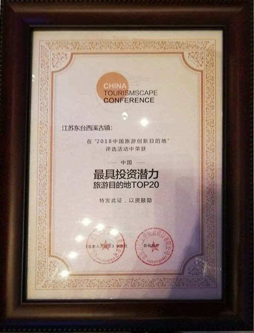 东台西溪古镇荣膺中国最具投资潜力旅游目的地TOP20。