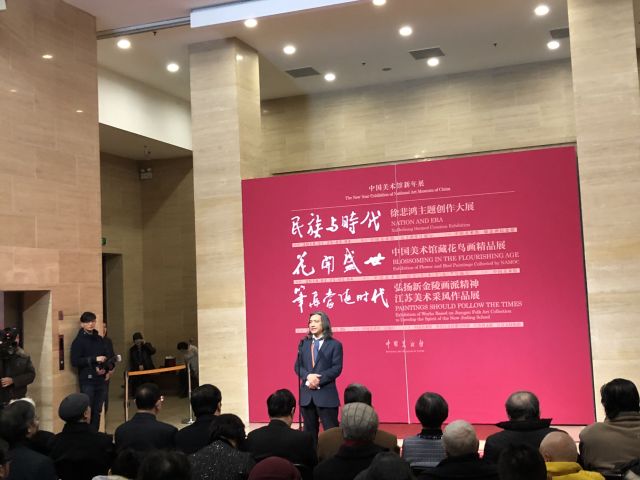 “笔墨当随时代”-----弘扬新金陵画派精神江苏美术采风作品展,1月25日在中国美术馆举行开幕式。本次展览由中国美术馆联合中共江苏省委宣传部、江苏省文联和江苏文投集团共同主办,是2018中国美术馆新年展之一。展览作品包括傅抱石等新金陵画派代表人物真迹,29位当代江苏美术家精心创作的作品80余幅,以及新金陵画派1960年、江苏画家2016年两次采风活动的文字、图片及影像资料。展览现场,不同时代的艺术交相辉映,传递着先贤与今人的对话,展现了江苏美术家“笔墨当随时代”的艺术传承。