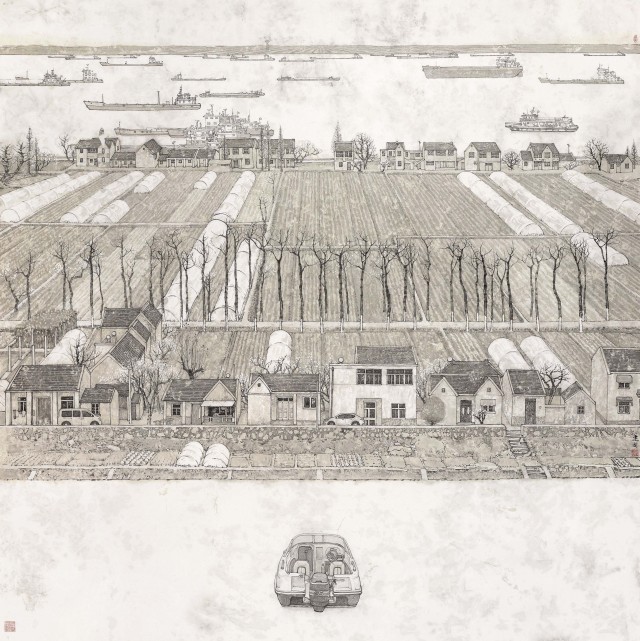 这次采风写生活动历时25天,跨越豫、陕、川、鄂、湘、粤、闽、渝等8个省市,足迹踏遍50余个采风点,行程3万8千里。采风团成员充满激情、踊跃参与,既走访当年写生点,又走进“一带一路”新景观;既亲身感受改革开放巨大成就,又亲密接触重大典型人物,形成了写生稿1000余张。在此基础上,采风团成员又历经一年多时间的研讨、观摩,精心创作了150多幅优秀作品。这次在中国美术馆展出的作品,就在由其中遴选而出。作品用火热的激情,描绘改革开放以来祖国山河新变化、社会建设新成就、人民群众新风貌,体现了江苏当代美术家“笔墨当随时代”的生动实践,以及求新、求变、求精的艺术追求。