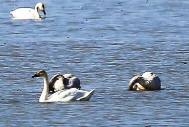 小天鹅为国家二级保护动物,是一种大型水禽,繁殖于西伯利亚苔原地区。每年12月前后,它们就来到扬州越冬,一般在2月底3月初离开扬州往北飞。除了小天鹅,巡湖人员在湖区还发现了成群的白骨顶(俗称獐鸡)和红嘴鸥等,它们是今年湖区最为常见的冬候鸟,“每次去巡湖都看得到,数量很多。”