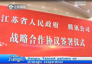 East China’s Jiangsu province signed an agreement of strategic cooperation Wednesday in Nanjing. Lou Qinjian, secretary of the CPC Jiangsu Provincial Committee,met with Ma Huateng, Chairman and CEO of Tencent. Wu Zhenglong, governor of Nanjing, attended the signing ceremony.