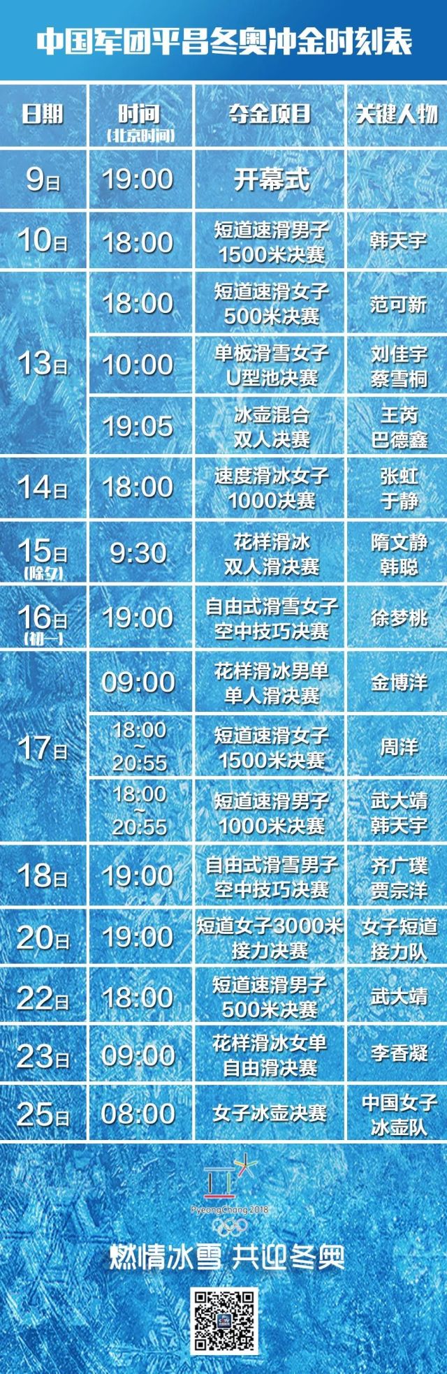 来,这一份中国军团冲金时刻表请收好,夺金时刻全知晓!