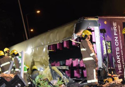 据香港媒体报道,香港新界大埔公路10日傍晚发生双层巴士侧翻事故,迄今已造成19人死亡,66人受伤,目前仍有47名伤者留医,其中11人仍然危急,21人情况严重。15名死者身份已公布,仍有4名死者未确认身份。