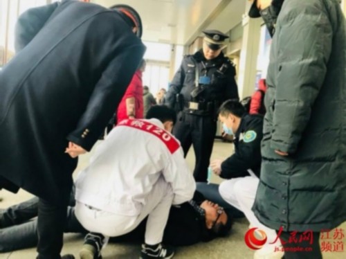 日前,徐州火车站内发生了暖心的一幕,旅客刘某在过完春节返程途中突发疾病,抽搐倒地,在徐州铁路公安干警及时救助下,最终旅客转危为安。