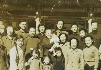 国庆十周年亲属聚会合影,中间抱小孩者为陆淑珍