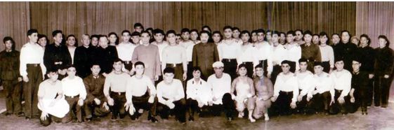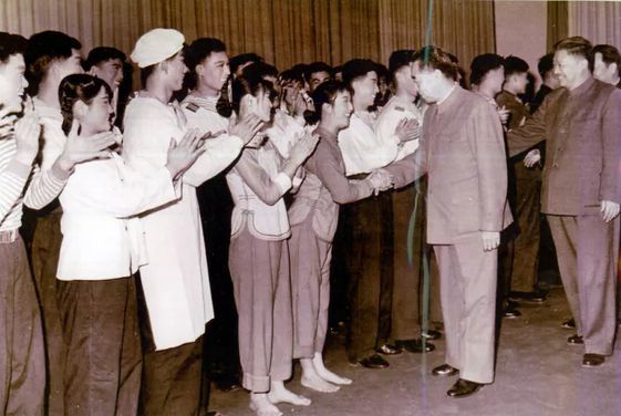 周恩来等中央首长,接见参加第三届全军文艺汇演海军战士业余标兵演出队全体成员。