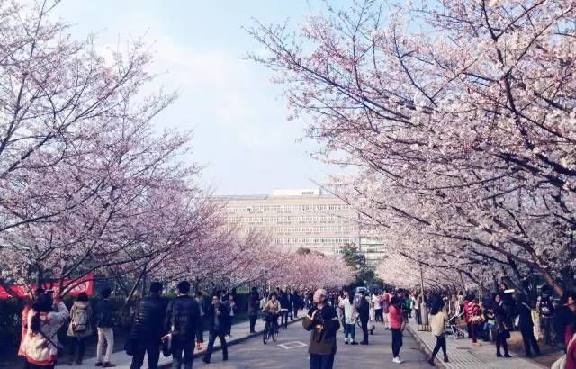 江南大学公益图书馆前的一片樱花林,虽然数量比不上鼋头渚,樱花点缀着绿地,南临小蠡湖,映衬着图书馆,平添了书卷气息。许多从江大毕业的学子,都说要把这芬芳记忆留存一世。
