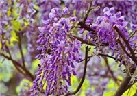 野生的紫藤爬满了一些树冠,和公园里的相比,她是更自然的状态,成群的野蜂嗡嗡地飞梭其间。