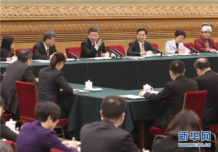 3月7日,中共中央总书记、国家主席、中央军委主席习近平参加十三届全国人大一次会议广东代表团的审议。 新华社发(盛佳鹏 摄)
