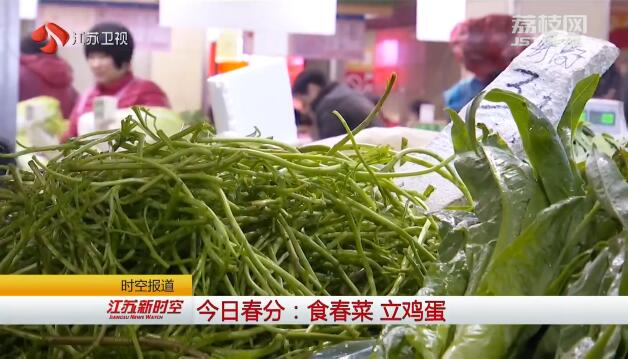 "蒌蒿满地芦芽短,正是河豚欲上时"。在民间,有春分吃"春菜"的习俗,用以祛阴散寒,寓意生活蒸蒸日上。在南京进香河菜场,许多摊位上的时令野菜都很抢手,其中最受欢迎的是香椿头、荠菜头、枸杞头、马兰头和菊花脑等等。不少市民前来购买尝鲜。