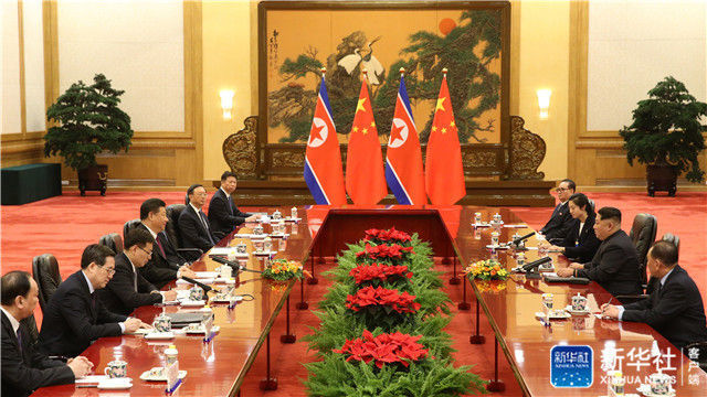 习近平强调,中国党和政府高度重视中朝友好合作关系,维护好、巩固好、发展好中朝关系始终是中国党和政府坚定不移的方针。我们愿同朝鲜同志一道,不忘初心,携手前进,推动中朝关系长期健康稳定发展,造福两国和两国人民,为地区和平稳定发展作出新的贡献。一是继续发挥高层交往的引领作用。高层交往在中朝关系发展中历来发挥着最重要的引领和推动作用。新形势下,我愿同委员长同志通过互访、互派特使、互致信函等多种形式保持经常联系。二是充分用好战略沟通的传统法宝。经常就重大问题深入交换意见,是中朝两党的光荣传统。要充分发挥党际交往的重要作用,促进两国各领域的交流合作,加强沟通与互信。三是积极促进和平发展。当前,中国特色社会主义已经进入新时代,朝鲜社会主义建设也进入了新的历史时期。我们愿同朝方共同努力,顺应时代潮流,高举和平、发展、合作、共赢旗帜,不断增进两国人民福祉,为本地区和平、稳定、发展作出积极贡献。四是夯实中朝友好的民意基础。双方应该通过各种形式,加强两国人民交流往来,巩固两国友好关系民意基础,特别是加强两国青年一代交流,继承和发扬中朝友好的优良传统。