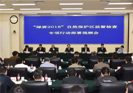 3月27日,生态环境部、自然资源部、水利部、农业农村部、国家林业和草原局、中国科学院和国家海洋局等七部门在京联合召开“绿盾2018”自然保护区监督检查专项行动(以下简称“绿盾2018”专项行动)部署视频会。