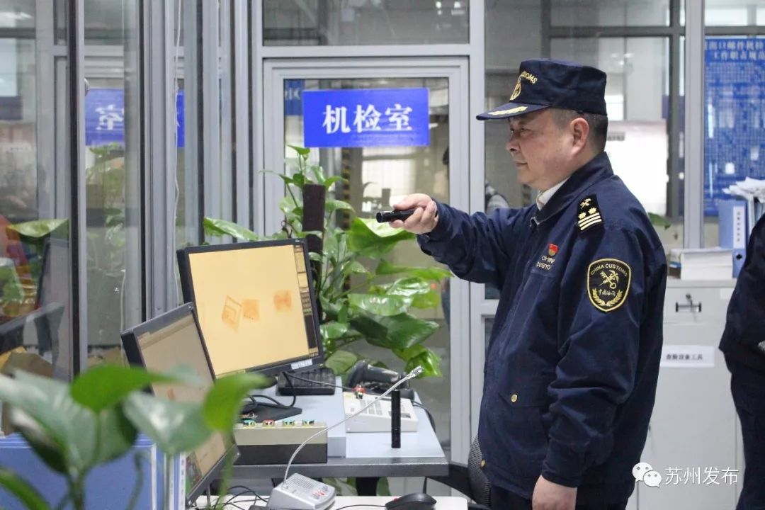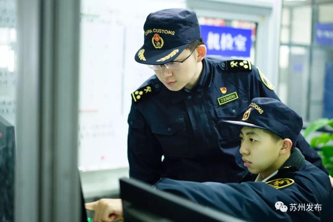 接着,苏州海关通关中心一位文弱的小姐姐穿着黑色制服走来,说道: