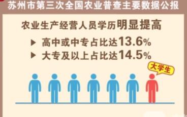 我苏网讯 日前,苏州市统计局公布了第三次全国农业普查主要数据公报。公报显示,越来越多的有学历、有技术的年轻人投入到农业农村事业中。