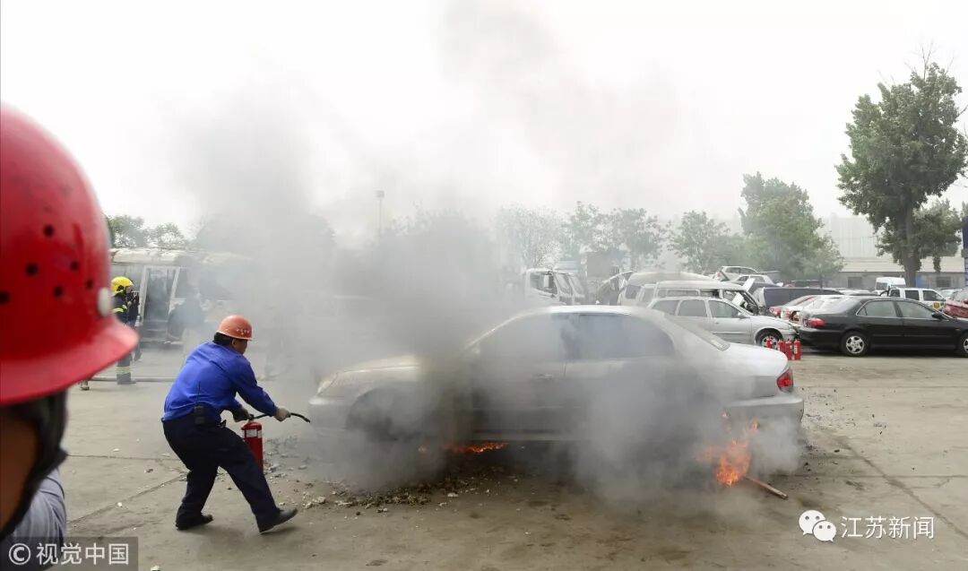 △ 2017年5月,北京消防大兴支队在一家汽车解体厂使用杨柳絮做了一项引燃汽车的试验。杨柳絮在遇到明火2秒内迅速燃烧,1分钟左右就将汽车引燃。