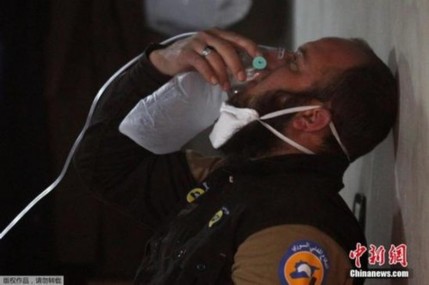 资料图片:叙利亚遭化学武器袭击,受伤人员正在吸氧。